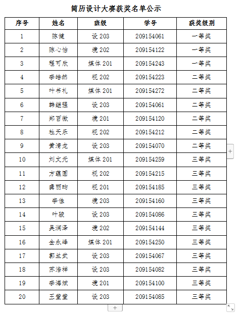 为了帮助学生提高个人职业素质,掌握制作优秀简历的技能,做好职业规划,增强就业优势,“a动漫 2024届毕业生简历设计大赛”已经圆满结束。经综合评审后,简历制作环节共决出一等奖3名,二等奖6名,三等奖11名,现将获奖名单公示如下: