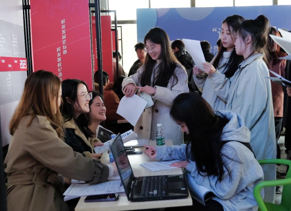 在招聘会现场,学院领导与用人单位逐一进行交流,了解今年招聘情况,并询问毕业生的求职意向和签约情况,鼓励学生抓住机遇、高质量就业。本次专场招聘会也受到了同学们的热烈欢迎和积极响应,招聘现场学生爆满,累计投递简历120余份。