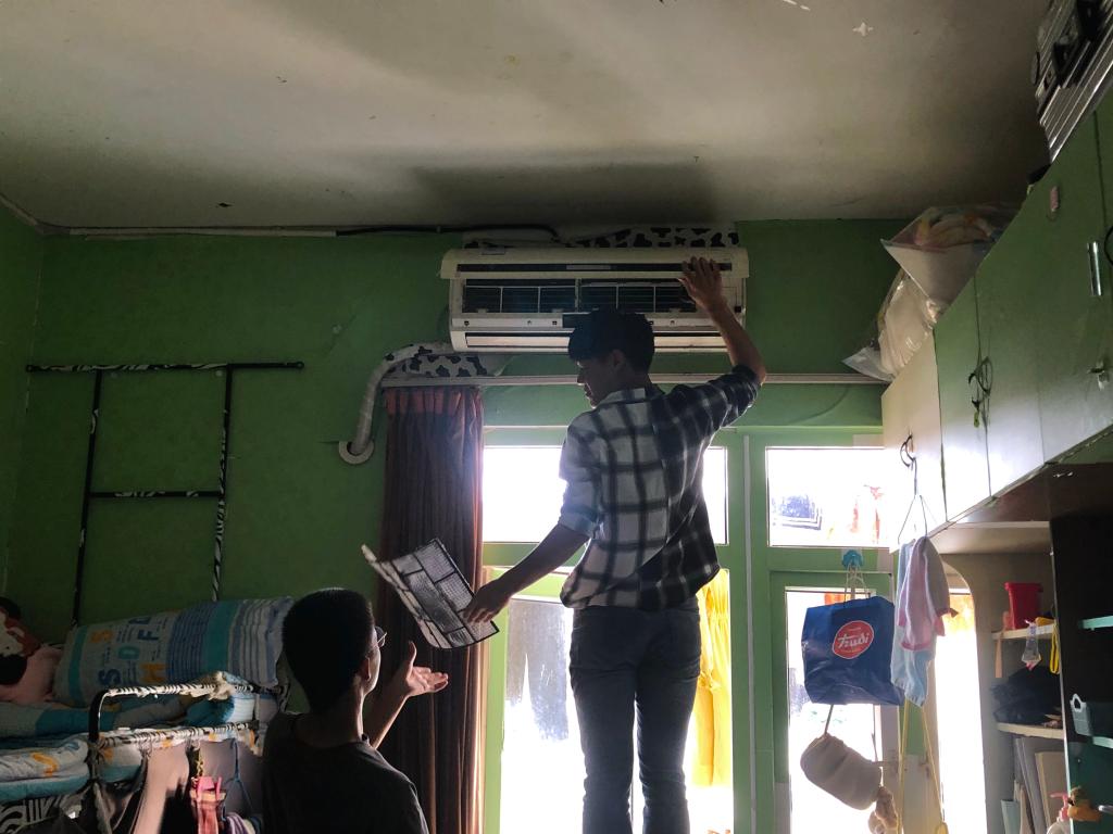 活动开始前,各班级代表接受了相关理论指导,熟悉空调清洗步骤及要领,并认真观看视频演示。随后,各班级男生代表充分发挥“不怕脏不怕累”的精神,主动上门,有条不紊的帮助女生宿舍清洗空调,大家分工合作,干劲十足。有的同学在帮助本班同学清洗空调后还自发地帮助其他专业的女生宿舍清洗空调,迎来一致好评。最后,各年级辅导员也叮嘱同学们要注意用电安全和适时使用,当宿舍无人时要及时关闭空调,夏天来了莫要太贪凉。