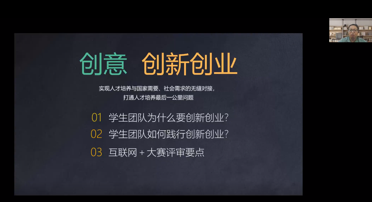 讲座分为三个部分,王震亚教授在《从慕课到金课:一流课程建设与申报》讲座中,分析了疫情下在线教育的痛点与机会,以国家一流课程建设规划为与会者详细讲解了国家一流课程中线上课程、线下课程、线上线下混合课程、社会实践课程与虚拟仿真课程的区别与各自申报要点,并结合自己多年教学经验,针对线上线下混合一流课程的建设、申报及评审等方面的内容与注意事项进行深入讲解与剖析。王鹤副教授在《设计教学中的课程思政》中结合自己教授的《全球公共艺术设计前沿》详细讲述了他如何将课程建设与课程思政深度融合,并结合课程教学中“建党百年与红色之旅”“抗击疫情与公共卫生”“扶贫助学与乡村振兴”等课程训练方向的具体做法与实践设计,详细展示了如何将教学资源、课程思政、实践训练与科学研究等进行系统化设计、建设。刘宗明教授在《艺术类专业学生“互联网+”创新创业大赛项目的培育经验分享与交流》从学生团队为什么要创新创业、学生团队如何践行创新创业、互联网+大赛评审要点为各位老师和同学讲解了如何做好比赛项目培育,并结合他指导的国赛银奖作品“便民卫视——无害化农村改厕新利器”展示了学生如何从前期找创意、找技术,比赛中如何完善竞赛方案、提高路演自信、夯实项目资料等,最终获得大赛好成绩的全过程。