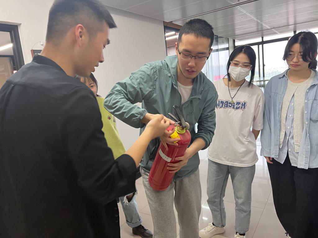 最后,罗晓珊老师根据周边校园近期发生的实际案例,强调了此次班会的目的和意义,要求同学们自查自纠、排除隐患,如日常工作和生活中出现的各类违规使用电器问题、骑车时未正确佩戴安全帽问题等。2021级班长王强同学,作为一名退役士兵,利用在部队所学消防知识,为大家普及灭火器的正确使用方法,指导同学们正确使用灭火器,提升安全知识和技能。