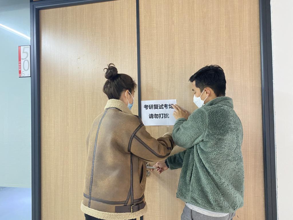 每年三月是考研学子们上岸的最后一关,在疫情的关键时刻,考研学子们无法参加线下考试。为保证考研复试学子能顺利参加复试,2018级辅导员李亚飞、孙海澄深入学生,了解学生需求,组织购买了复试需要的手机支架,为考研学子解决线上复试的网络问题,并单独设立了5个考研复试教室,创造独立空间,为考研复试学子保驾护航。每个学生的努力都值得被肯定,两位辅导员及时在群内转发调剂相关信息,尽可能保证考研学子求学顺利。