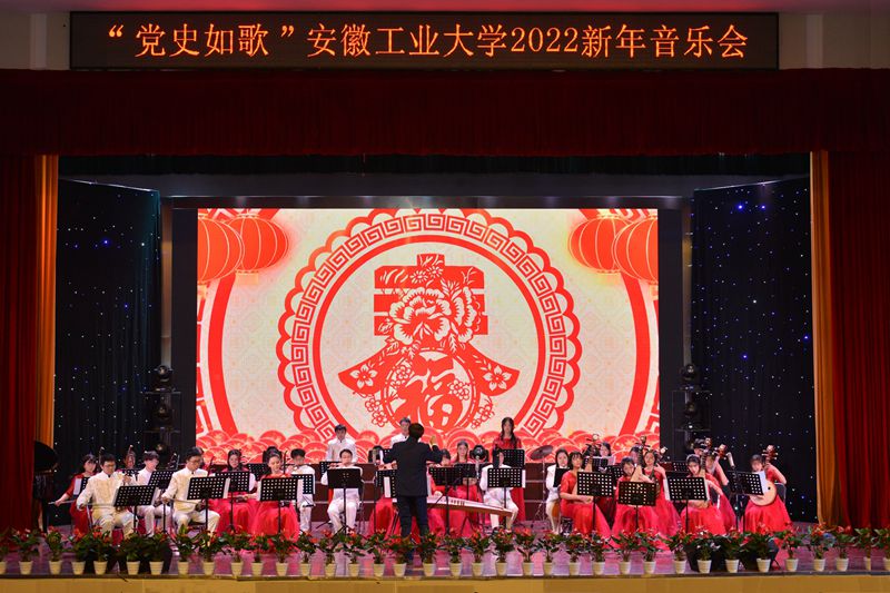 承办,党办校办、党委宣传(统战)部、团委协办的“党史如歌”2022新年音乐会在秀山校区新大学生活动中心浓情上演。校党委书记陆林,校长魏先文,副校长顾明言,副校长刘明,校纪委书记、监察专员潘淑琴,副校长王先柱以及相关职能部门、学院党政负责人、师生代表共同观看了音乐会。