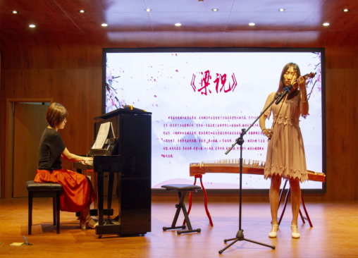 的梅怡茵的深情演绎,娓娓动听,余音袅袅;外语学院的付紫璇带来的《二泉映月》、《三门峡畅想曲》,这两首二胡名曲充分展示了民族乐器独有的魅力。婉转的曲调中又带着刚韧,细腻中又饱含着激情;最后压轴的是来自商学院的年悦和来自机械学院的陈子扬带来的钢琴独奏。他们分别演绎了一中一外两首曲目《彩云追月》和《热情奏鸣曲》,悠扬的琴声和热情的旋律感染了在场的同学们。随着贝多芬《热情奏鸣曲》最后一个音符落下,大家都纷纷起立鼓掌,沉浸并回味着这一场听觉盛宴……