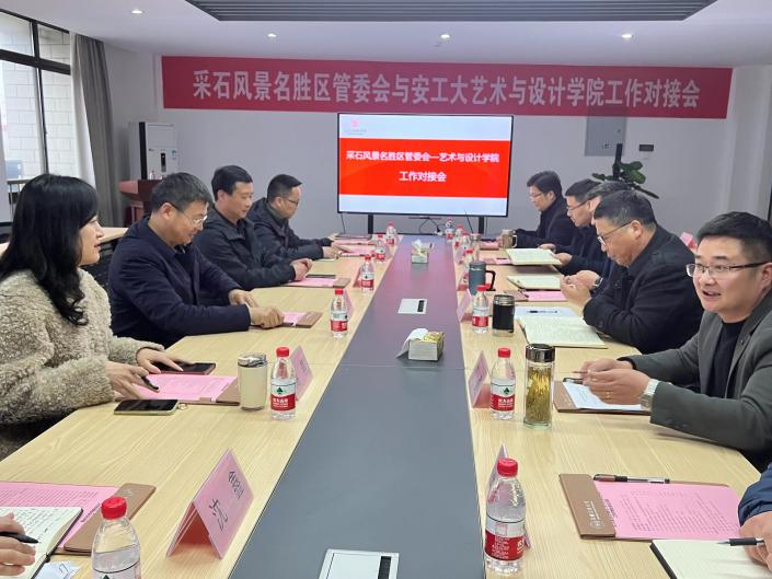 对接会上,学院党委书记张为清对殷宏斌一行的到来表示热烈欢迎,并详细介绍了学院的发展历史沿革、办学特色、师资力量以及近年来学院文创成果情况,并展示了该院在开展文创产品研发、文旅融合研究等方面取得的进展和成果。采石风景区管委会党组成员、副主任高燕介绍了风景区建设发展情况以及需要协调支持事项。双方围绕推动风景区文化研究传承、文旅品牌推广、文创产品开发等内容进行了充分的交流和沟通。