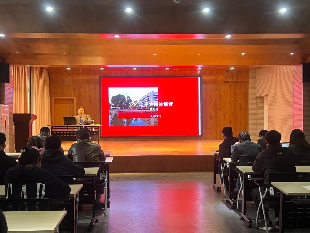 结合主题教育动员部署会议,以讲党课全面开启理论学习。4月24日下午,院党委书记张为清以“深刻理解和把握党的二十大主题”为题,为学院全体师生党员讲授专题党课。