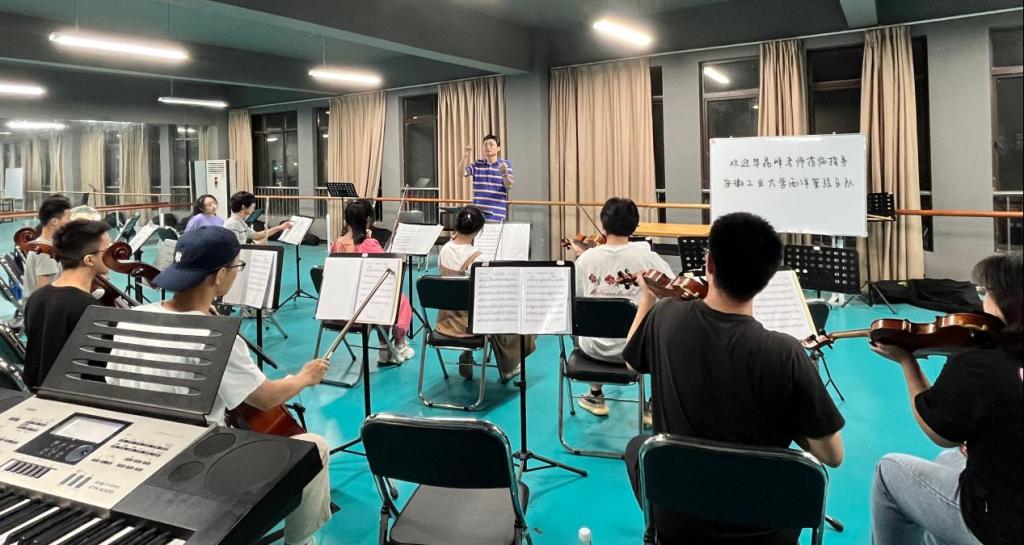 美育教研室吴奕昕老师主持,校大学生艺术团西洋管弦乐团学生们参加此次活动。
