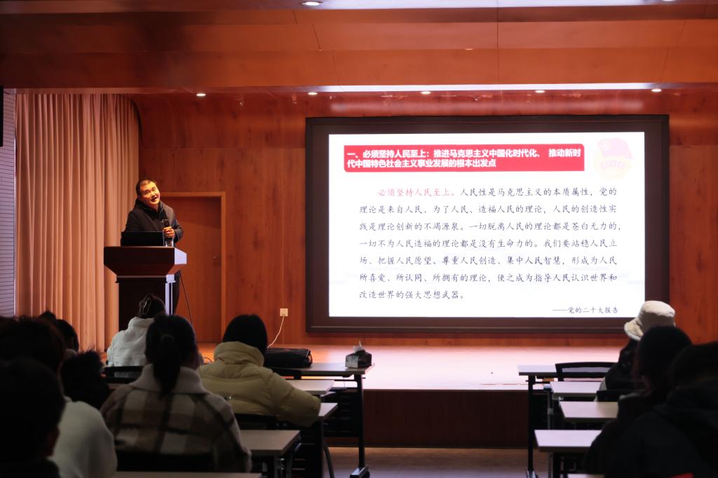 李春雨以“习近平新时代中国特色社会主义思想的世界观和方法论”为主题,围绕“六个坚持”,从历史唯物主义角度深刻阐述了开展理论学习的重大意义和重点要求。同时,他结合不同时期的生动案例,引导在座学生增强责任担当,厚植家国情怀,坚持学思用贯通做到知信行统一。