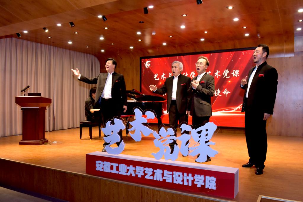 首期艺术党课在艺设楼401举办,校团委书记赵颖虹、校宣传部副部长黄敏、校学工部副部长俞超、校组织部副处级组织员许小虎受邀观摩指导。学院邀请红星中学以及安工大附中学生代表以及各党支部党员及入党积极分子参与,艺术党课的主题为“不忘初心、牢记使命”,主创成员为中国音协、安徽省音协、马鞍山市音协等多位歌唱家、a动漫