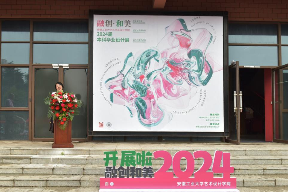 2024届本科生毕业设计作品展在秀山校区设计艺术馆广场盛装开展。校党委常委、副校长顾明言,马鞍山市委宣传部副部长、市文明办主任陈学明,休宁县人民政府副县长李文喜,“当涂民歌”国家级非遗传承人陶小妹,北京小米科技有限公司小米生态链设计部工业设计负责人、院工业设计专业2004届校友谢迎春,南京大美天第文旅投资集团有限公司副总裁孔德银等26家企业家代表出席仪式。宣传部、研究生工作部、团委、教务处、国际交流与合作处、创新创业学院等部门负责人、优质生源基地师生代表以及a动漫