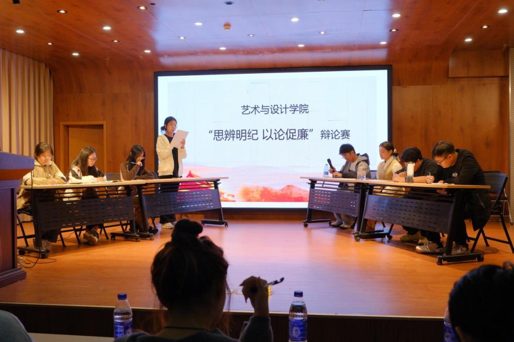 为丰富大一新生的校园文化生活,引导学生们深入思考廉洁自律、道德规范以及社会公正等问题,进而促进校园廉洁文化的建设与发展,学院于10月10日在艺设楼北401举行“思辨明纪 以论促廉”主题辩论赛。本次比赛分专业组建队伍,共有4支队伍参加比赛,数百名师生前来观看,场面异常热烈。