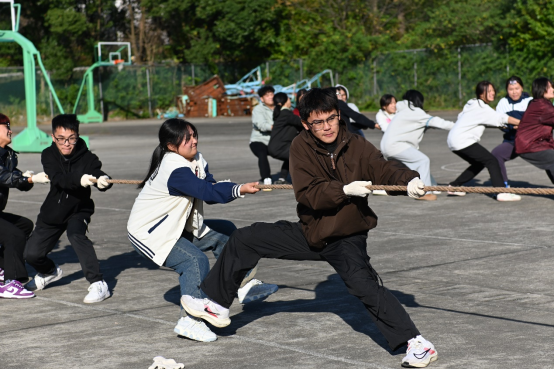 比赛分为多个小组,大一各班级全部参与。比赛过程中,同学们热情高涨,全力以赴。现场呐喊助威声此起彼伏,热闹非凡。他们的每一次用力拉拽,不仅是对体力的考验,更是对团队协作能力的深刻体现,展现了青年人的活力与拼搏精神。