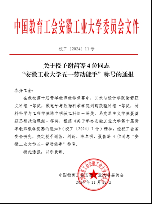 第十届青年教师教学竞赛的通知》(校工(2024)1号)精神,经校工会常委会研究,决定授予谢茜等4位老师“a动漫