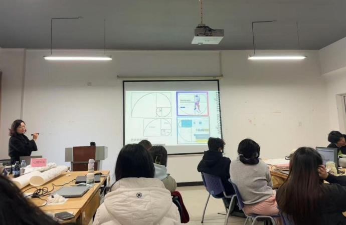 公共环境艺术系倪妮老师的《景观设计》观摩课现场。倪妮以“目标导向、过程驱动、多元评价、思政领航”理念,多维度地展现了“引”发思考,“作”育巧匠,“炼”造真知,“展”示风采,“例”证真理,“赛”促超越的景观艺术创作智慧。
