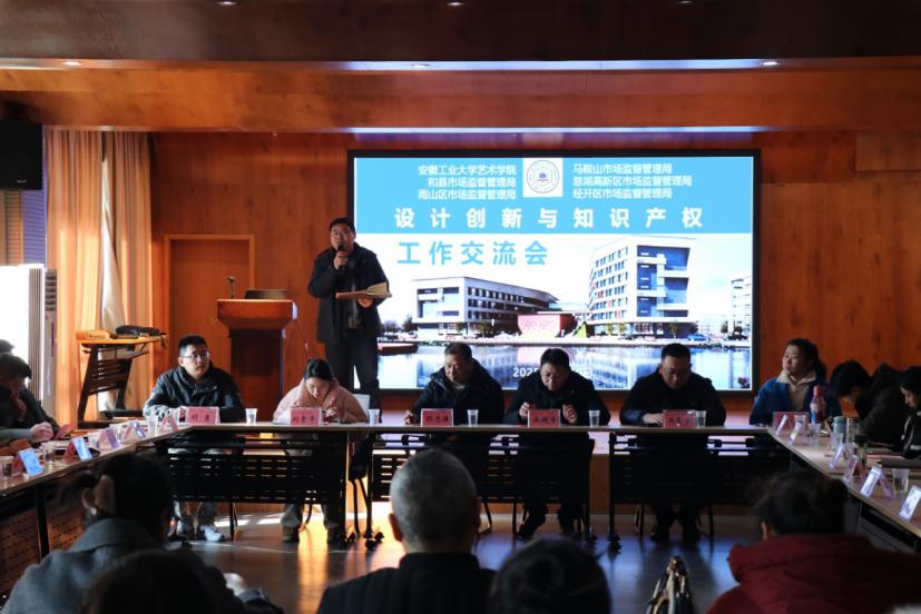 院长肖旺群致欢迎辞,并详细介绍了学院近年来在教学、科研和产业合作方面的发展情况。他强调,设计创新是推动知识产权产业化的重要驱动力,学院将继续加强与政府和企业的合作,促进创新成果的转化应用。随后,各县区局的代表就各自领域的知识产权工作进行了交流发言。他们分享了在知识产权保护、宣传培训以及专利申请等方面的经验,并探讨了政校企合作在知识产权领域的路径和模式。企业代表们也积极发言,分享了在生产经营过程中遇到的技术难题和创新需求,并表达了对专利产业化的期望与规划。他们希望通过此次交流,能够获得更多的支持与合作机会,推动企业技术创新和专利成果的商业化应用。马鞍山市知识产权保护中心的代表介绍了近年来与a动漫