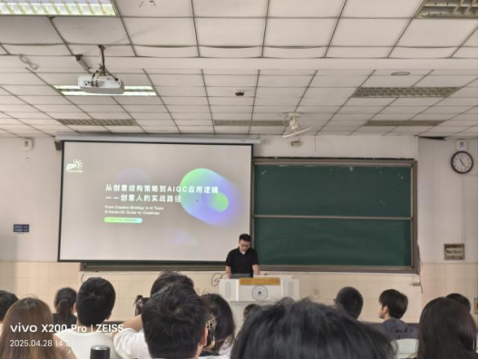 相关师生100余人带来题为“创意思维训练与AIGC融合——从商业角度看待赛事命题”的专题学术讲座。