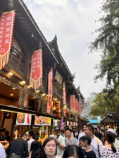 这是一个融合了古老与现代的文化艺术区域。学生们这里欣赏到了精美的艺术品和创意设计,同时也品味了当地的美食和特色饮品。洪崖洞的夜景也是一大亮点,夜幕降临时,灯火辉煌,让学生们感受到了灯光设计下古典建筑的美轮美奂。