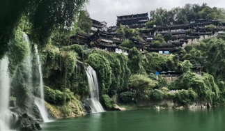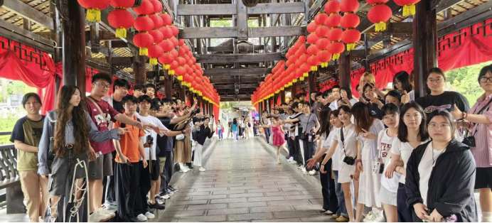 最后一站是芙蓉镇,这座历史悠久的小镇因沈从文笔下的《边城》而闻名,素有“湘西第一镇”的美誉。同学们在芙蓉镇的吊脚楼群中,感受湘西独特的建筑风格和民俗文化。大家将古镇的韵味融入自己的艺术创作中,展现了对地域文化的深刻理解。