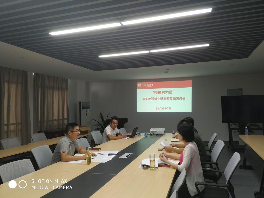 学工队伍积极响应学校号召,以“榜样的力量”为主题,就我校赵颖虹老师的优秀事迹进行了专题学习并展开热烈讨论。学院全体辅导员、党支部书记参加了本次会议。会议由学院党委副书记、副院长方勇主持。