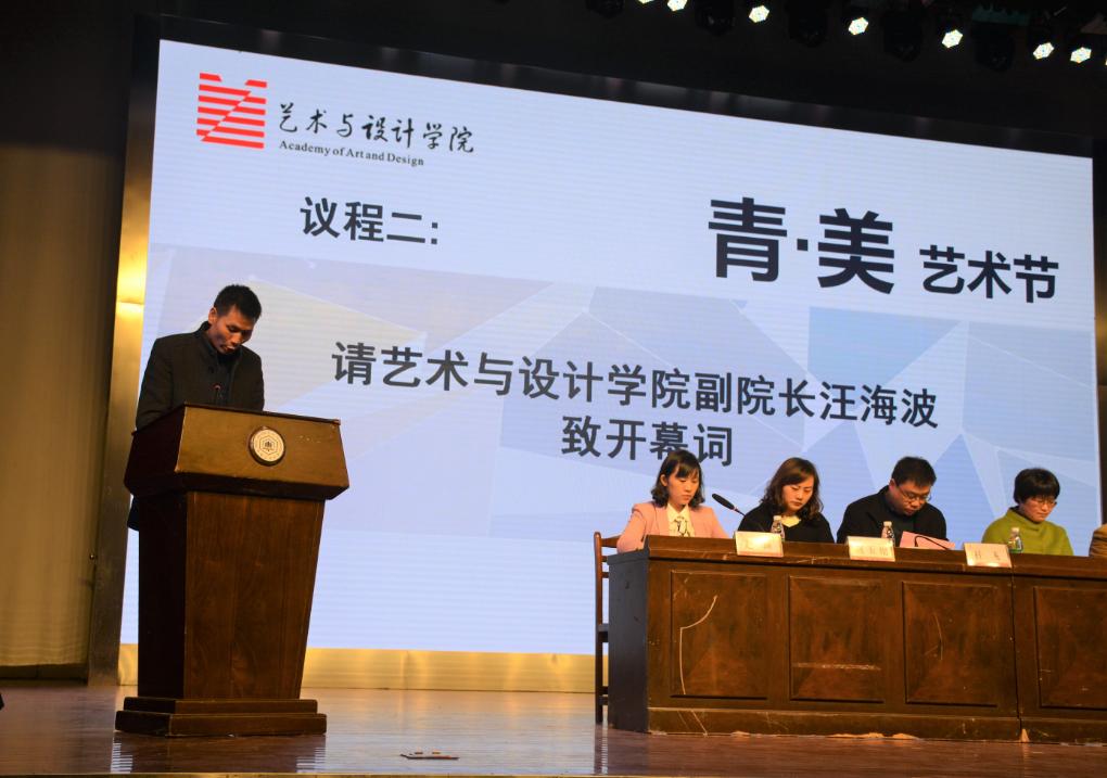 副院长汪海波致开幕词,随后由党委副书记、副院长赵玉艳宣读第四届“青·美艺术节”方案,a动漫
